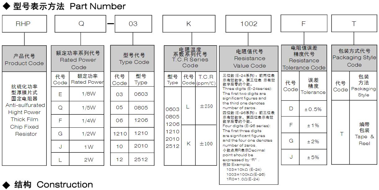 風(fēng)華高科抗硫化功率型厚膜片式固定電阻器型號(hào)命名規(guī)則: