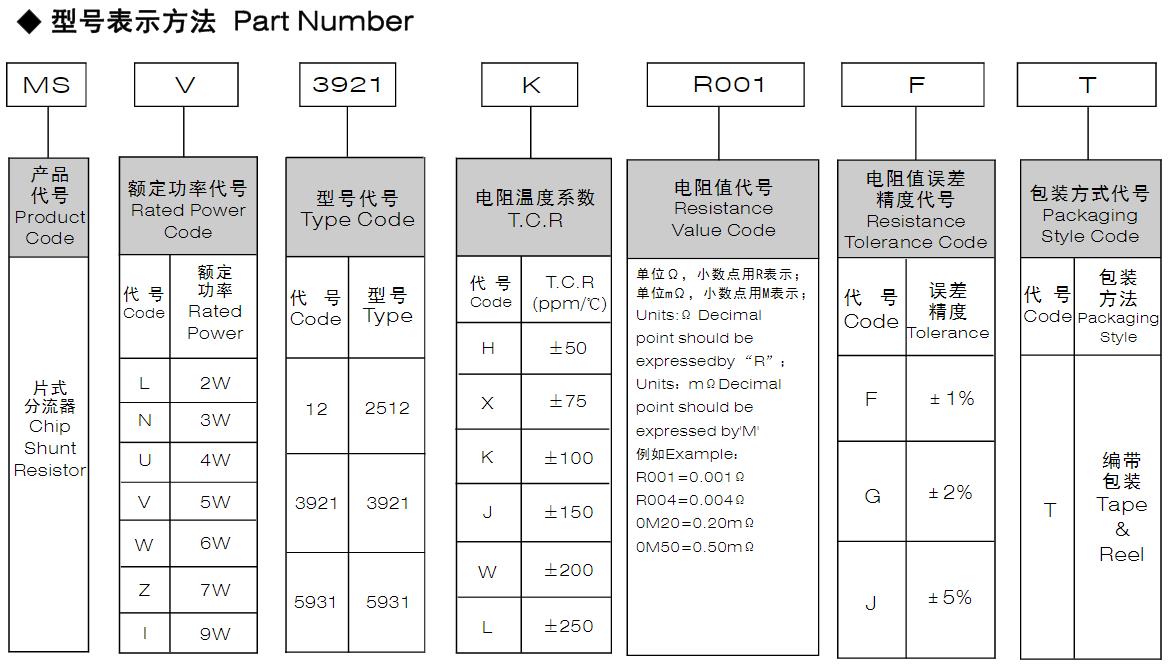 風華高科片式分流電阻器型號命名規則: