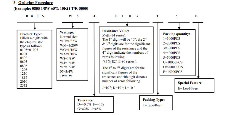 厚聲電阻命名規則對照表: