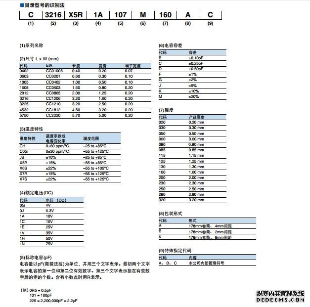 例如 : C 3216 X5R 1A 107 M 160 A C