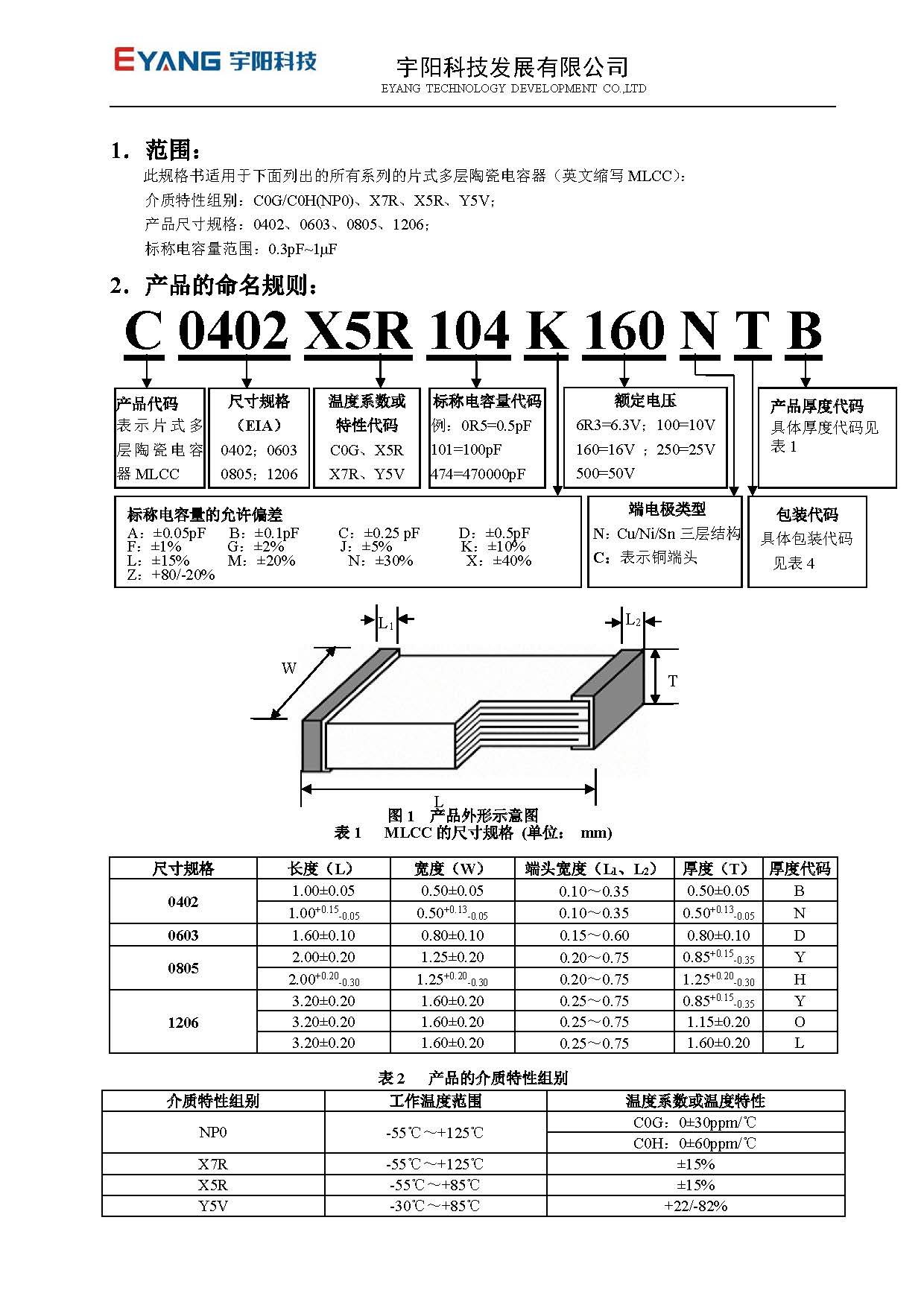 宇陽(yáng)(EYANG)品牌-貼片電容-電子元器件