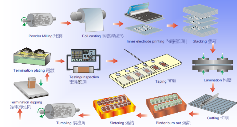 多層片式陶瓷電容器簡(jiǎn)稱(chēng)貼片電容、片容,日本及臺(tái)灣地區(qū)常稱(chēng)為積層電容或疊層電容