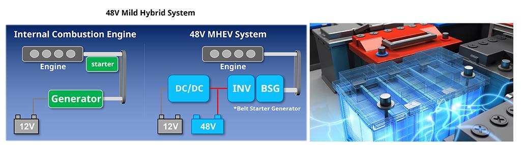 2010年代48V電壓系統出現的最大背景就是尾氣排放限制。生產內燃機的汽車制造商通過改善Powertrain,提高燃油效率來滿足尾氣排放標準。所謂的輕混合動力(MHEV)就是廉價的混合動力系統。汽車制造商們喜歡MHEV的原因是,生產起來簡單。MHEV系統在當前的內燃機Powertrain上增加48V系統便可以制造,能夠以比Full-hybrid更低廉的成本實現尾氣排放的減少。但電壓值為什么定為48V呢?原因是各國規定對人體無害的安全電壓(SELV:Safety Extra Low Voltage)為60V。而且在過去的100年間,48V的電壓被證明為可以適用于電話的安全電壓。