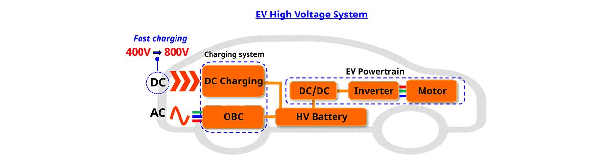 電動汽車Powertrain的基本構成為儲存能源的高電壓電池、逆變器和電動馬達。電動汽車Powertrain使用高電壓。與電動汽車耗電效率相關的部分是高效的電力轉換。電動汽車中有LDC、OBC、Inverter等多種電力轉換裝置。采用多種DC/DC Converter Topology,可實現各裝置間的整合。實際上OBC(On Board Charger)和LDC(Low-Voltage DC/DC Converter)也在實現整合。若實現系統整合,可以減少零件數和使用空間。